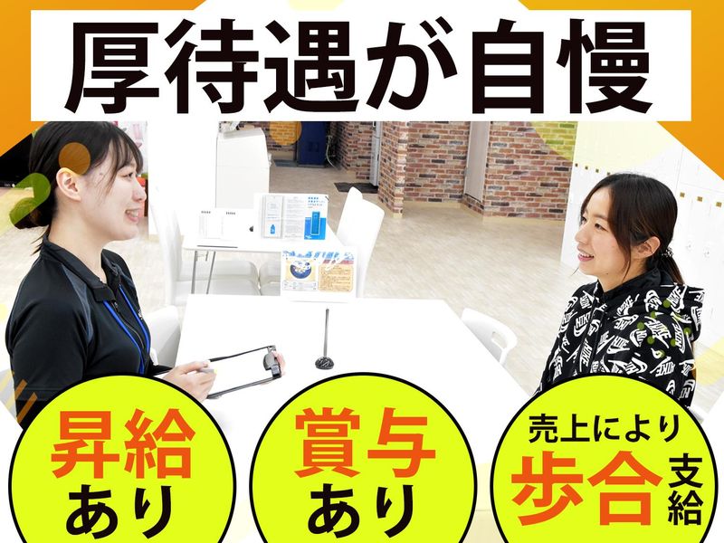 【保険制度】 雇用保険、労災保険、健康保険、厚生年金 待遇・福利厚生 【福利厚生】 ✅社会保険完備 ✅交通費全額支給 ✅昇給あり ✅賞与あり ✅売上による歩合あり ✅資格手当 ✅社員登用制度 ✅いつでも無料で施設利用OK! ✅車通勤可