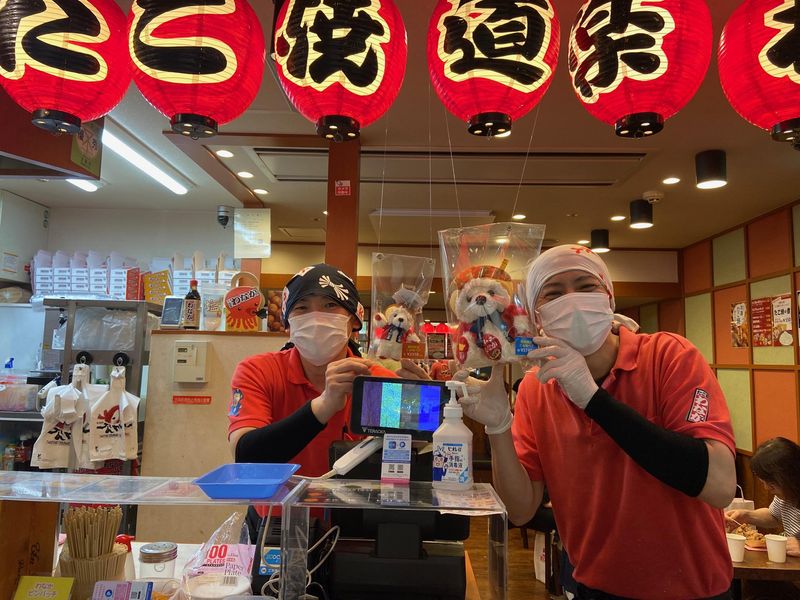 仕事内容 最初はお客様への味付けのお伺い・レジ、商品の提供等をお願いします。(客席が近く席数も少ないのでホール業務というほどの業務はありません) 商品はたこ焼きとドリンクのみなので覚えるのは簡単! それでも最初は緊張してうまくできないかもしれませんが、「丁寧に」と「自分なりの一番の笑顔」さえ心がけてもらえたら問題なしです。 店長をはじめ、いつでも誰かがサポートができる環境と人員は整っていますので。 その後早ければ1か月しない内に、たこ焼きの調理の練習に入ります。 火や油を使うので、最初はゆっくり丁寧に。手順を覚えつつ少しずつ慣れていきましょう。 返し方のコツや手際をよくする方法は手慣れた先輩たちがサポートしたくてうずうずしていますのでいつでも何でも気軽に相談してくださいね。 ちなみにうちは包丁を使ってタコをカットする作業がないので実は仕込みがとっても楽ちん☆ 実務に集中しやすいので、退屈することもないですしみんななかなか成長が早い→日に日に楽しさが増していく職場です。 「たこ焼き屋さん」っていうちょっとした特殊性のあるお仕事ではありますが、正直週末や繁忙期はとても忙しくどうしても淡々とした作業時間の連続になりがちです。 なのでうちでは「焼き場」「味付け係」「レジ」の各ポジションをだいたい1時間おきにローテーションをかけるようにしています。 そうすることでちょっとした気分転換ができるのと区切りがはっきりするので時間が経つのがとにかく早いんですよ(笑) また、どのポジションにいても連携・コミュニケーションがとても大事になってきますので、オーダーの声掛け・それに対する復唱や確認なども怠らないようにしています。 そうすることでスタッフ同士の信頼関係が築けてお店が順調且つ楽しく営業できるようになりますので。 ロケーションは構内のお店なので悪天候に影響されることはないですし、空調完備なので暑さ・寒さも気にならず年中快適です。