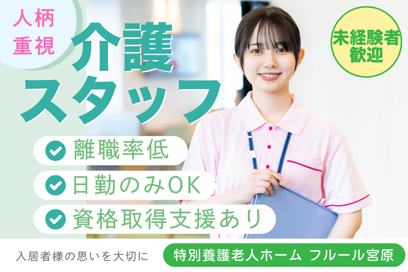 仕事内容 「家庭も自分も大切にしながら、新しいことに挑戦したい」 ――そんなあなたを応援します。 「人に感謝される仕事がしたい」「家の近くで長く働きたい」 そんな想いを叶えられる、地域密着の介護施設です。 30〜50代のスタッフが中心に活躍中! ブランク・未経験・無資格の方もOK! 研修&資格取得支援で安心スタートできます。 +:-:+:-:+:-:+:-:+:-:+:-:+:-:+:-:+ <この求人のPOINT> ・未経験・無資格から安心スタート◎ ・家庭や子育てと両立しやすい柔軟シフト ・日勤のみ・夜勤少なめも相談OK ・週休2日/残業ほぼなし(月10h以内) ・賞与年2回+昇給あり ・スタッフ定着率◎人間関係の良さが自慢♪ +:-:+:-:+:-:+:-:+:-:+:-:+:-:+:-:+ ※『♡』マークで求人の保存もお忘れなく! ■仕事内容について ━━━━━━━━━━ 特別養護老人ホームで、 入居者さまの「いつもの暮らし」を支えるお仕事です。 お話をしたり、笑顔で寄り添ったり ――そんな小さな関わりも大切にしています。 最初は【簡単なお手伝い】からスタート! 先輩スタッフがしっかりフォローするので、 未経験の方も安心です◎ <主なお仕事> ・食事や入浴などのサポート ・着替えや移動のお手伝い ・お部屋の清掃や配膳など ・レクリエーションのお手伝い など 最初は先輩が付き添いながら一つずつ覚えていけます! ■未経験でも安心できる理由 ━━━━━━━━━━━━━━━ ・資格取得支援制度あり(初任者研修など) ・研修・OJT体制充実 ・無資格スタートの先輩多数! 入社後、資格取得を目指してキャリアアップも可能です。 「子育てが落ち着いたから、もう一度働きたい」という方も活躍中! ■柔軟な働き方が可能! ━━━━━━━━━━━━━━ ・日勤のみ/夜勤専従/夜勤少なめなど相談OK ・家庭の事情に合わせてシフト調整 ・夜勤1回あたり8,000円の手当でしっかり稼げます 「日中だけ働きたい」「夜勤で収入を増やしたい」 などライフスタイルに合わせて働けます。 ■先輩たちの転職の声 ━━━━━━━━━━━ 前職:飲食業/38歳/入社2年目 体力的に不安だったけど、日勤中心で家庭と両立できています。 “ありがとう”の言葉をもらえる毎日が励みです。 ―――――――――――――― 前職:アパレル販売/28歳/入社1年目 無資格からスタート。資格も取れて、今は夜勤手当込みで月収30万円。 家計にもゆとりができました。 ―――――――――――――― 前職:倉庫作業/46歳/入社3年目 転職後、年収100万円アップ! 定時で帰れる日も多く、家族との時間が増えました。 ―――――――――――――― 経験も年齢も関係なく、あなたらしい働き方が叶う環境です。 新しい一歩を、ぜひここから踏み出しませんか? ―――――――――――――― 前職:専業主婦/43歳/入社1年目 子育てが落ち着き、もう一度働きたいと思って応募。 最初は不安でしたが、丁寧に教えてもらえて安心でした。 “ありがとう”の言葉が嬉しくて、毎日笑顔で帰れます。 ―――――――――――――― 前職:スーパーのレジパート/48歳/入社2年目 長くパートを続けてきましたが、将来を考えて正社員に。 家庭と両立しながら安定収入が得られています。 今は資格取得にも挑戦中です!