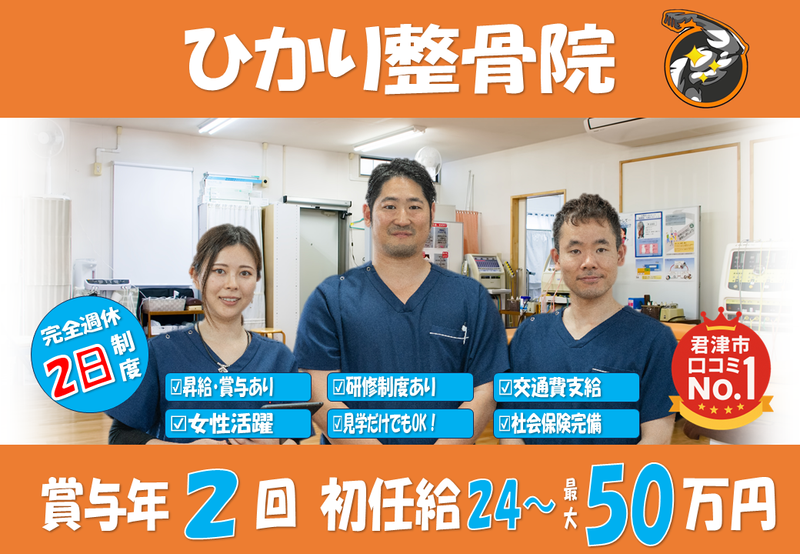 仕事内容 / 「中抜けOK」の3時間休憩が実は人気! 家に帰って夕飯の支度も、車で仮眠も自由自在◎ \ 拘束時間は少し長めですが、その分「自由な時間」もたっぷり。 役所や銀行へ行ったり、一度帰宅してリフレッシュしたり。 ただ待機するだけの休憩ではありません! ▽無理なく働けるワケ! ✅経験不問!実技研修や勉強会あり ✅2年目で院長クラスも目指せます! ✅年間休日120日以上&長期休暇完備 ✅残業ほぼなし&時短勤務可 ✅雰囲気良好!人間関係に悩まない 《 収入面も大満足 》 ♢頑張りは年2賞与&昇給に反映〇 ♢調整手当+役職手当で最大12万円! ♢資格手当や食事手当など待遇充実 < 業務内容 > ・保険請求業務 ・施術(手技、電気) ・受付業務 ・院内清掃 *1人あたり平均10~15名対応/日 *施術時間:1回あたり30分前後 *お客様は40~50代女性が中心 *美容整体あり *予約のお客様優先 < 選考に関する情報をチェック> ☑履歴書は当日持参でOK! ☑面接は19時半まで対応可能 ☑ 面接1回×リモート面接OK 「実際の雰囲気が気になる…」 そんな不安を解消できるよう、 職場見学もご用意しています!