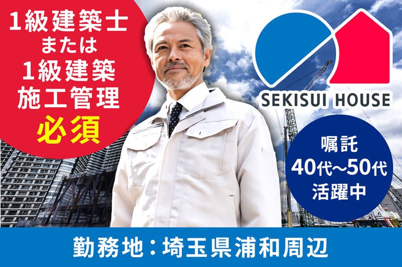 【アピールポイント】 一級建築士の資格をお持ちの方必見! 監理技術者としてのお仕事です! 下記どちらかの資格が必須になります ・一級建築士 ・一級建築施工管理技士 ■高収入!月給45万円~!年収540万円~! ■シニア・定年退職した方などブランクもOK! ■女性も活躍中!仕事・プライベート両立可能! ■土日祝休み・長期休暇あり・年間休日129日! ■残業ほぼナシ! 【担当現場エリア】 埼玉県さいたま市浦和区周辺 現場例:浦和、大宮、川口、戸田、東京都北区、板橋区など 【支店】 積水ハウス株式会社 埼玉南シャーメゾン支店