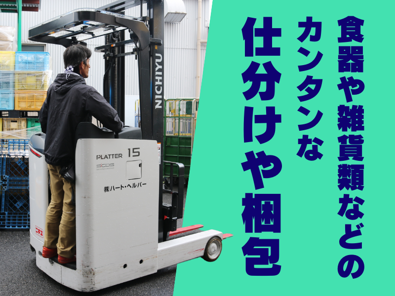 仕事内容 <おすすめポイント>- ★業績好調!体制強化のためスタッフ増員 ★週5日勤務で月収19万円以上稼げる ★すぐに覚えられるシンプル作業 ★Wワーク・かけもち・副業・兼業OK ★シニアの方も応援します - 海外へ輸出する雑貨類などの商品を 扱っています。 <仕事内容> ・雑貨類を商品別に仕分け ・出荷するための梱包作業 ・倉庫内の荷物の運搬(リフト作業) ◆リフト経験者は優遇します。 <未経験の方も安心> 先輩スタッフが丁寧にお教えします。 わからないことや困ったときは 何でも聞いてくださいね。 <事業の紹介> 日本の食器などの陶器は 海外でも非常に人気で 国内で仕入れて海外に輸出しています。 おかげさまで業績好調! これからも需要が伸びる見込みで 体制強化のためのスタッフ増員です。 <シニアスタッフより> 定年で家にいてもヒマで 老後の蓄えになればと働いています。 週5日働くことで規則正しい生活を送れ 月収も19万円以上になります。 たまに旅行に出かけたり 家族で食事に行ったりと 暮らしに余裕もできています。 <事業内容> 貿易・ネット事業・不用品買取・遺品整理