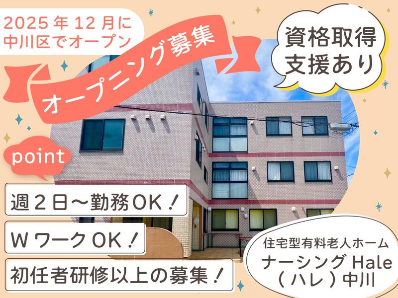 仕事内容 ☆☆☆☆☆☆☆☆☆☆☆☆☆☆☆☆☆☆ ✨まずは気軽に会社案内を聞いてみたい!職場見学をしたい! そんな方はこちらから↓ https://forms.gle/tmjL7vCCMaE5RDoVA WEB応募は24時間、365日受付中! ☆☆☆☆☆☆☆☆☆☆☆☆☆☆☆☆☆☆ 2025年12月、名古屋市中川区に「住宅型有料老人ホームナーシングHale中川」がオープンします✨ 当施設名の「Hale」はハワイ語で「家」。利用者様やそのご家族にとって、心から温かく、親しみを感じていただける「第二の家族の家」でありたい。そんな想いを込めています。 運営会社である株式会社コー・イングの社名「Co(共に)、ing(〜する)」には、従業員一人ひとりの個性や強みを活かし、それぞれの夢の実現に向けて、みんなで協力し合いながら進んでいきたいという願いが込められています。 私たちは、利用者様とそのご家族に「ナーシングHale中川に出会えて本当に良かった!」と感じていただくことを目指しています! そして、いつかそのご家族が「将来自分もここに入りたい」、お子さんが「ここで働きたい」と願うような、そんな誇れる施設をあなたの力で共に創り上げていきたいと考えています。 【代表からのメッセージ】 あなたの意見やアイデアが、この「Hale中川」の温かい雰囲気、最高のサービスに直結します。 また、単なる介護ではなく、利用者様とそのご家族の人生に深く寄り添い、希望に満ちた未来をサポートする、かけがえのない役割です。 フラットな関係性でお互いを尊重し意見を出し、協力し合いながら一緒により良い施設にしていきたいと考えています! 利用者様とご家族、そしてあなた自身の未来を一緒に彩りませんか? あなたの素晴らしい個性と情熱を、ぜひここで活かしてください。 ご応募、心よりお待ちしております。 【仕事内容】 利用者様の生活のサポートをお願いします。 食事・トイレ・入浴の介助、着替えのお手伝い、就寝中の見守りなど、皆様の暮らしを支える一連のお仕事をお任せします。 ⭐経営理念⭐ 「共創」 〜理念に込めた想い〜 従業員、利用者様、ご家族、取引先、地域住民などステークホルダーと共に協力しながら、より良い社会や一人ひとりの幸せの形を創り出す。