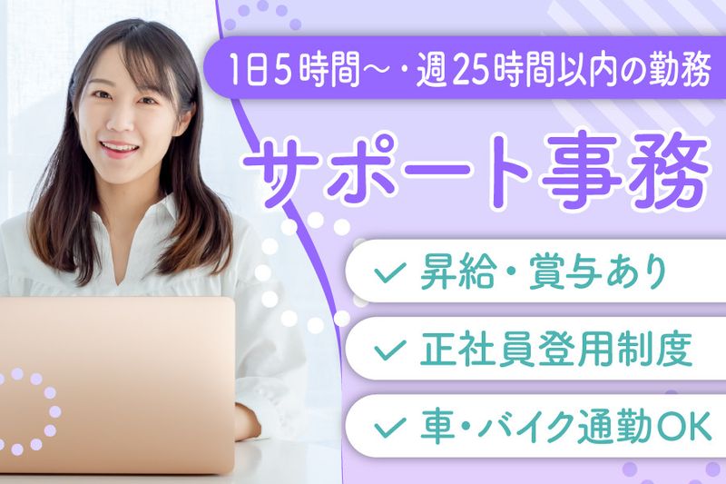 【アピールポイント】 ⭐人気の事務スタッフ募集!⭐ 【未経験やブランクがある方も積極採用!】 補助的な業務が中心だから、安心してスタートできます! ✅1日5時間~!勤務時間は調整可能! ✅昇給・賞与あり! ✅正社員登用制度あり! ✅車通勤・バイク通勤OK!(駐車場完備)