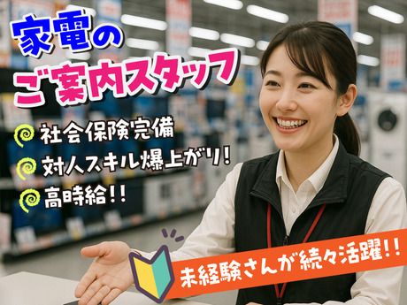 仕事内容 仕事内容詳細 【ポイント】 *≪高時給≫時給1500円(日給12,000円)+残業が発生した場合は別途支給+交通費 *≪残業無し≫残業は月に1時間弱! *≪インセンティブあり≫新製品発売時期には嬉しいインセンティブ支給 *≪ノルマ無し≫販売ノルマはありません *≪週休2日制≫で安定雇用! *≪有休取得率80%以上≫公休と合わせて4連休を取得することも可能です。 【仕事内容】 家電量販店でエアコンの販売を担当します。 エアコンをお探しのお客様にお声掛けし、やお部屋の広さや生活スタイルに合う商品をご提案していただきます。 最新エアコンや機能が充実した商品、シンプルな機能でお値段がお手頃な商品等、お客様のご希望に合う商品を一緒に探すお手伝いをお願いします。 1つのメーカーのみを担当します。 覚えるのは1メーカーのみなので覚える事が少ないのも働きやすさの一つです! お客様にご案内するときはパンプレットを見ながら説明OK! 就業が決まったら、数時間の商品研修に参加します。 もちろん給与をお支払いします! 少しでも気になることがあれば、近くにたくさんの先輩方がいるので直ぐに教えて頂けるので安心です。 スキルと経験を積むことが出来るので将来的に大きなステップアップに役立ちますよ。 ★嬉しいインセンティブあり 【研修充実!3ステップアップ】 (1)まずはじっくり商品知識を習得 (2)先輩販売員と一緒にお仕事開始 (3)徐々にスキル・キャリアを進めて待遇もUP 【雇用形態】 派遣社員 【給与】 時給1500円×8時間=日給12,000円+交通日 ※残業は発生した場合は残業時給1875円で計算してお支払いします アピールポイント 【やりがいPOINT】 ・お客様から頼られる存在になれる! ・「ありがとう!」や「助かったよ!」という感謝の言葉を直接受け取れるのが嬉しい! ・お客様のライフスタイルに寄り添うので、ヒアリング力やコミュニケーション力が身に付く! ・頑張りが「成果」となって返ってくる(インセンティブや評価制度) ・新製品の情報をいち早くGTEできる ・大手企業の一員として経験を積んでキャリアアップが目指せる! 福利厚生 ・社会保険完備 ・交通費支給 ・有給休暇あり ・キャリアアップ制度あり ・残業代あり ・駐車場完備 ・車通勤OK!! - 【スキルアップ】 eラーニングで効率よくスキルアップを図りませんか? 福利厚生の一環として、ぜひご活用ください! - 【国家資格者による無料キャリア相談サービス】 ◆当社には、国家資格でもある 『キャリアコンサルタント』が在籍しております。 転職、職場での悩み、子育てとの両立など、働く上での悩みを、 キャリアコンサルタントが相談者の立場に寄り添いながら 問題解決の支援を行っております。 - 【就業後のサポート専任部隊がおります!】 当社には、キャリアコンサルタント以外にも 就業後のサポートエキスパート部隊がいます 仕事の不安、悩みはもちろん、プライベートな相談も可能です。 安心して働ける様にサポートいたしますので、 いつでも気軽にお話してくださいね。 - 《採用までの流れ》 (1)希望のお仕事にエントリー(WEBからご応募ください) (2)当社よりメールまたはお電話でご連絡いたします (ご応募いただいたお仕事の確認、登録会の日程について) (3)登録(30分~1時間程度) 担当者より、お仕事内容とご就業までの流れについてご説明をさせていただきます。 ※オンライン登録または来社登録にて承っております。 人柄重視の採用です。まずはお気軽にご応募ください。 登録は世間話をするような雰囲気なので堅苦しさはまったくありません! ※スマイル、サンビレッジ、アイ・ファインはグループ会社です 上記3社は、人材サービスの企業グループを形成しています。 求職者様により適切なお仕事をご紹介するために、お預かりした個人情報を共同利用させていただきます。 共同利用の幹事社は、以下の通りです。 株式会社アイ・ファイン 代表取締役 伊勢学