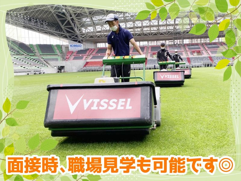 仕事内容 ●求人のポイント● ✅ 未経験歓迎! 20代・30代活躍中の職場で安心スタート ✅選手の全力プレーを支えるピッチを作る ✅未経験からスポーツ専門職へ!研修制度充実 ✅国際試合のハーフタイムでの活躍も…? ✅昇給賞与あり!7年目年収例560万円 ✅ 安定の正社員採用でキャリアアップも目指せます! ✅残業月20時間以内!年間休日120日程度 美しい芝生の上で、 たくさんの人を魅了する選手達。 熱い戦いがピッチ上で繰り広げられ、 息を呑むシーンが沢山あります。 そんなプレーを裏で支えるのが 私たちグラウンズパーソン。 選手がプレーを行うピッチ・芝生の メンテナンスが主な仕事です。 ピッチの状態は、選手のプレーに 影響を与えるものです。 時には勝敗の行方や、選手の人生さえも、 左右しかねないかもしれません。 だからこそ私たちもチームの一員という想いで、 日々の仕事に取り組んでいます。 ボールの弾みや転がりなど、 試合を行う上でより適切な状態を保つための クオリティ調査も欠かせません。 また、ピッチは見た目も大事なもの。 来場されたお客様が驚き目を奪われるような 芝生の美しさをいつも心掛けています。 あなたも私たちと一緒に、 挑戦してみませんか? =========== 【具体的な業務内容は…】 ●芝刈り ●肥料撒き ●試合準備のライン引き・ゴール設置 ●試合直前やハーフタイム中の整備 ●試合後の芝補修 ノエビアスタジアムを中心とした、 神戸市内のスタジアム・練習場などの 芝生のメンテナンスを行います。 ノエビアスタジアムは世界基準の芝生育成システムを完備しています。 芝生の長さ・密度・硬さ・張りなどの状態が 直接選手のプレーにも影響するため、 細部にまでこだわりメンテナンスしています。 スタジアムではサッカーや ラグビーなどのスポーツ利用の他、 結婚式・スタジアムツアー・ライブ・保育園行事など 多くのイベントも行われています。 \入社後のステップUPは…/ まずは先輩と一緒に作業を担当して、 仕事の流れや芝生の基礎知識を覚えていきます。 こうしたOJTのほか、植物や造園の知識を学ぶ 勉強会にも参加していただきます。 芝のコンディションを最高の状態で維持するには、 気象・土壌・菌や虫・肥料などの知識が必要です。 また開催されるスポーツの特徴を 深く知っていくことも大切になってきます。 学べることが多いため、 何年働いても成長を実感できるはず。 =========== 【先輩からのメッセージ】 「プロの試合や世界大会を支えているという、 良いプレッシャーの中メンバー一丸となって 楽しく作業をしています。 分からないことがあっても仲間がいるから大丈夫! これからも多くの選手が私たちが手掛けたピッチで、 どのような最高のパフォーマンスを 見せてくれるのかが楽しみです」 「サッカーに携わる仕事に就くのは、 ずっとサッカーを続けてきた自分にとって夢でした。 選手、トレーナー、スポーツショップなど 様々な仕事があると思いますが、 グラウンズパーソンというのは盲点。 この求人を見つけたとき、 是非やりたいと思いましたし、 実際プロ選手を支えられる実感が強く、 天職だと思えます」