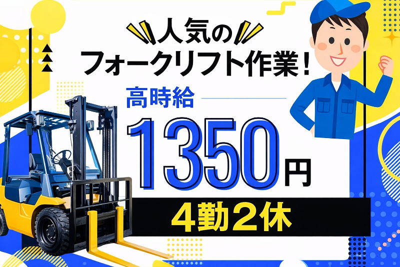 アピールポイント: ✨入社祝金2万円支給!(規定有) ✨ 4勤2休で月の休みが多い ✨ 2交替+残業で高収入 ✨派遣でも長期安定 ✨フォーク作業メインで体の負担少なめ