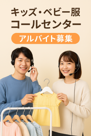 応募資格 <学歴・資格・経験・性別・年齢不問> 1つでも当てはまればOK♪ ◆人と話すことが好きな方 ◆PC操作の文字入力が出来る方 ◆コールセンター経験者の方 ◆アパレルや飲食など、接客経験がある方 ◆洋服が好きな方