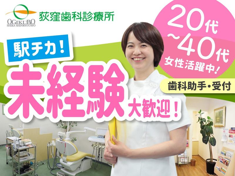 仕事内容 歯科助手や歯科受付など、 クリニックのお仕事に興味がある方注目⯎ ・・・・・・・・・・・・・・・・・・・・・・・・・・・・・・・・・・・・・・・ 受付での患者様の対応や電話応対などの受付 業務と診療の簡単な補助をお願いします。 患者様を一番最初にお迎えするお仕事なので 明るい笑顔で応対が出来る方を歓迎します!  ̄ ̄V ̄ ̄ ̄ ̄ ̄ ̄ ̄ ̄ ̄ ̄ ̄ ̄ ̄ ̄ ̄ ̄ ̄ ≪POINT≫ *荻窪駅南口より徒歩3分で通勤ラクラク! *未経験、初めてのお仕事、大歓迎! *20~40代女性が活躍中! *WワークOK!週2日以上からOK! *午前と午後のシフト制! *午後は勤務時間相談可能です! *学生・フリーター・主婦(夫)歓迎! *交通費全額支給・制服貸予! ★こんな方におススメ!★ ・ずっと専業主婦(夫)だったけど 子供が成長して改めて お仕事に復帰したい方! ・自分の趣味の為にWワーク先を探していて 午前・午後など勤務時間を臨機応変に 変えれる勤務先がいいとお考えの方! ・学校終わりの数時間を有効活用できる 仕事場所を探している方! 学生様に関しては勤務時間は相談させて頂きます! ≪勤務時間はご相談下さい!≫ ≪仕事内容≫ 歯科助手として、 歯科医院での診療補助業務。 具体的には、 ・患者の受付 ・予約、電話の対応 ・診療器具の準備や片付け ・患者のサポート ・歯科医師の診療補助 など *未経験でもひとつひとつお教えするので、 安心してスタートできる歯科医院のお仕事。 医院の雰囲気はHPをチェックしてください。 *医療事務管理士の経験があって 転職をお考えな方、 その他歯科医療従事者の方で経験を 活かしたい方も大歓迎です。 ≪当院HP≫ https://ogikuboshika.cihp2.jp/ ――――――――――――――――――――