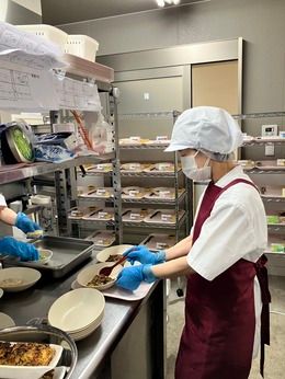 施設内での給食調理スタッフ