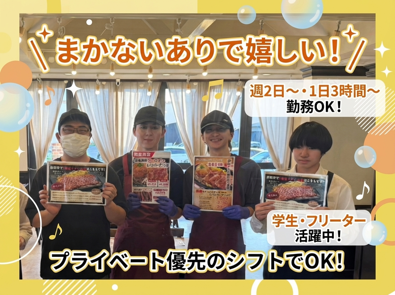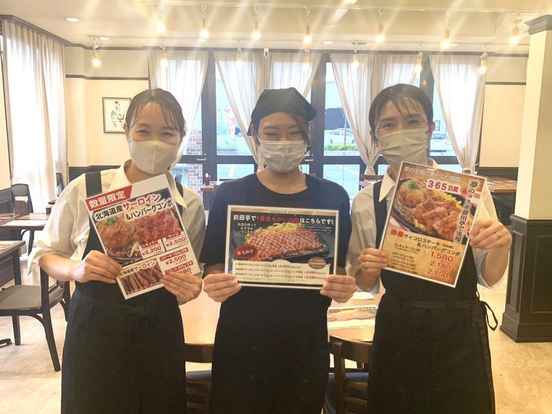 仕事内容 =============== 駅チカ&シフト自由! 「子どもが学校にいる間だけ」 「ランチタイムだけ」など、 サクッと働く主婦(夫)さん活躍中! =============== ✅1日3時間~・週2日~OK └子育てや家事との両立もラクラク! お子さんが熱を出して、 急に出勤できない…といった場合も 柔軟に対応しますので、ご安心を! ✅土日祝は時給50円UP! └時給1250円~で効率よく稼げる♪ ✅ネイルOK・染髪OK! └自分らしく働ける環境! *** 東武日光線「幸手駅」から徒歩5分! ステーキ&ハンバーグで大人気の 『前田亭 幸手店』で ホールスタッフを募集します♪ ⭐難しい仕事はありません!  ̄ ̄ ̄ ̄ ̄V ̄ ̄ ̄ ̄ ̄ ̄ ̄ ̄ ̄ ̄ ̄ ◆お客様のご案内 ◆オーダー取り ◆配膳・片付け ◆レジ会計 など ステーキ&ハンバーグ専門店で メニュー数が少なく、 あなたもスグに覚えられます◎ <<未経験でも安心です!>> 先輩たちがイチから教えますので、 未経験の方もご安心を♪ 「お料理を運ぶ」 「テーブルを片付ける」など できる仕事からお任せしますので、 少しずつ慣れていけばOK! なんでも遠慮なく聞いてくださいね。 ⭐ムリなく続けられる環境です!  ̄ ̄ ̄ ̄ ̄V ̄ ̄ ̄ ̄ ̄ ̄ ̄ ̄ ̄ ̄ ̄ 「日中のスキマ時間に」 「ランチタイムだけ」 など働き方は自由! 週1回シフトを提出するので、 その都度変えられるのもポイント♪ 「来週は家族旅行に行くから バイトはお休みにしよう!」 「その代わり、来々週は シフト多めで稼ごう!」 といった調整もできますよ◎ ⭐話せる仲間がいっぱい!  ̄ ̄ ̄ ̄ ̄V ̄ ̄ ̄ ̄ ̄ ̄ ̄ ̄ ̄ ̄ ̄ 子育ての悩みや、 子どもの進学の悩みなど 相談できる仲間って、 そういないと思いますが、 当店なら大丈夫♪ 同じことで悩んだ ちょっと先輩の主婦(夫)さんもいて、 役立つアドバイスをもらえたり! 時にはバイト終わりにみんなで 買い物や食事、カラオケに行ったり、 楽しい時間を過ごせます◎ ⭐ほかにもメリットがいっぱい!  ̄ ̄ ̄ ̄ ̄V ̄ ̄ ̄ ̄ ̄ ̄ ̄ ̄ ̄ ̄ ̄ ✅お肉好きに嬉しい充実の賄いあり ✅車・バイク・自転車通勤OK ✅髪色・髪型自由&ピアスOK