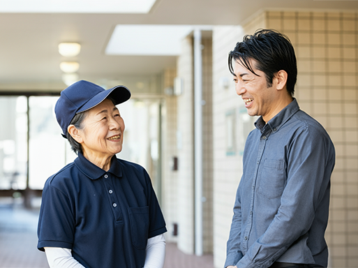 仕事内容 <未経験・ブランクのある方も大歓迎!> 60代シニア&女性スタッフ在籍・活躍中! セカンドキャリアとしての働き先を 探している方も大歓迎! 丁寧な研修があるので、未経験からでも 安心してスタートできる環境です。 【こんなお仕事をお任せします】 *マンション内の廊下や階段の清掃 *照明などの点検 *マンション周辺のゴミ拾い *ごみ置き場の整理 *お花の水やり *居住者・外来者の対応などの受付 *各種報告業務、PCでの報告書作成 *立ち合い業務、管理業務補助 など 幅広いお仕事をお任せします! 自分のペースで働きたい方に ピッタリなお仕事です! 居住者様から挨拶をされたり、 様々なお言葉を頂けることが とてもやりがいになります! <スタッフインタビュー> Aさん 男性60歳 最初はわからなくて戸惑いましたが、 すぐに仕事に慣れたので安心でした。 Bさん 女性72歳 居住者様とも顔見知りになると、 自分のペースで仕事ができて 毎日楽しいです。 Cさん 女性68歳 居住者様のお困りごとを 改善したり解決した時は、 とても感謝されます!