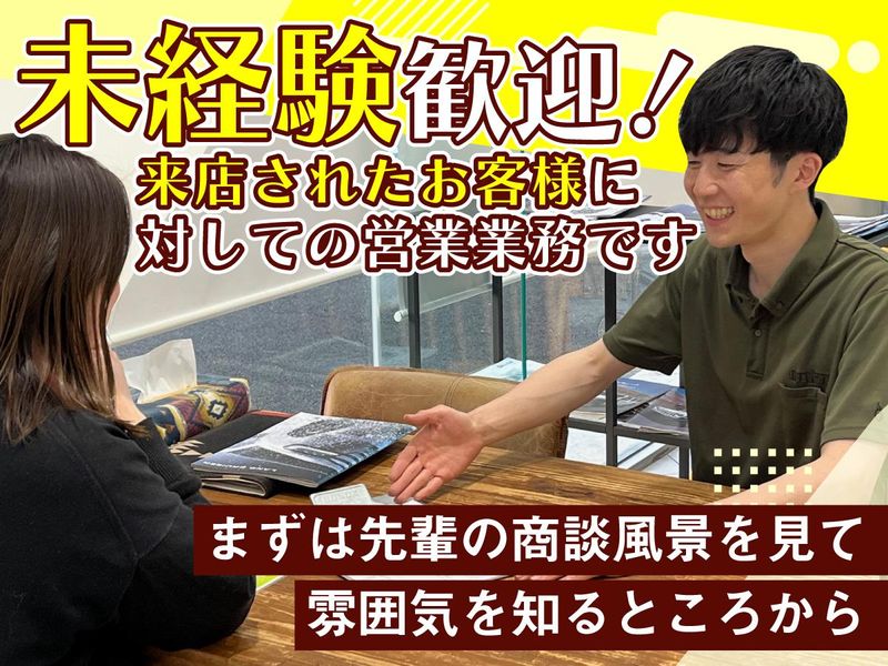 仕事内容 \営業未経験からOK!/ ランクル・ハイエース専⾨店にて、 ⾃動⾞の販売やカスタムのご提案をお任せ! セールスポイントや営業トークのコツまで 丁寧に教えていきます。 車種も1種類なので覚えやすいですよ◎ まずは先輩の商談を見ながら、 営業方法を学んでいきましょう! ==================== \ランクル・ハイエース専⾨店/ キャンプや登山、スノーボード、釣りなどの 趣味を持っているユーザーから人気! カスタムカーを販売しています。 荒れた道でも力強く走れる《ランクル》 ⾞中泊ができる《ハイエース》 アウトドアを楽しみたいお客様にとって 強い味⽅です。 HPやSNSでも話題になっており、 ご来店されるお客様は購入の動機が明確で、 商談が進めやすく、実際に 車を購入するお客様がとても多いです。 ==================== \このお仕事のポイント/ ■入社1年目から年収500万円が可能! ■月平均残業時間は20時間以内と少なめ! ■1分単位で残業代支給 ■完全週休2日制(月8~9日休み!) ■年末年始・リフレッシュ休暇あり ■有給休暇はほぼ100%消化! ■関東各地の店舗で活躍できるチャンスあり ==================== <お仕事内容> ・来店されたお客様へのヒアリング ・ご希望に沿った⾞種の提案 ・カスタム希望の確認、提案 など 専門的な知識は随時教えていきます◎ まずは先輩の商談を見ながら 少しずつ慣れていきましょう! 分からないことは何でも聞ける環境です。 ==================== <20代~40代の男女が活躍中!> アウトドア好きなメンバーが多め! 今は、釣り好きなスタッフが多いので、 休みを合わせて釣りに行くことも◎ スタッフ同士、仲がいい職場です。 あなたもすぐに馴染めますよ! ==================== <当社について> SUV、バンに特化したカスタムカー専⾨の 販売店を各地に展開しています。 アウトドアやイベント好きな社員が多く、 希望があれば会社主催のイベントに 参加することもできます! アウトドアやキャンプ、 釣り好きにはたまらない、 人気メーカーとのコラボ企画に携わる チャンスもあります。 ==================== お読みいただき、ありがとうございます! ご不明な点など気軽にお問合せください。 ご応募、心よりお待ちしています。