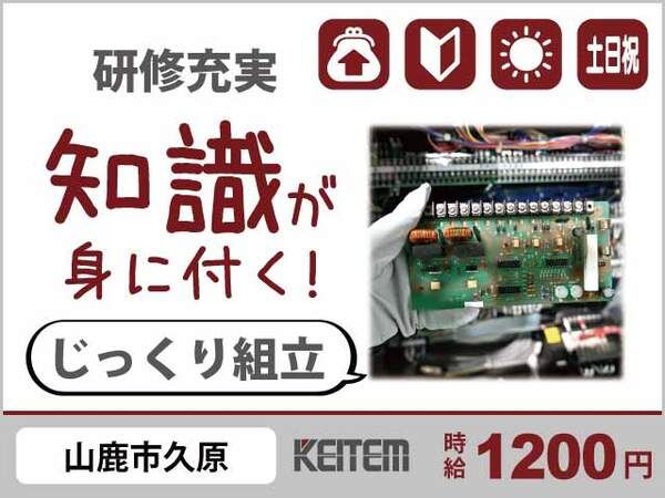 仕事内容 【ネジ締めや部品の組み付け】 半導体を作る機械の製造工場でのお仕事です。 空調完備のクリーンルームで作業をお願いします。 ▼仕事詳細 (1)ビスやネジを締めて部品の取り付け (2)ケーブルの差し込み など ▼たとえばこんな作業を行います ・ケーブルを切って決められた箇所に差し込む ・ゴムを温めて束ねる ・ケーブルをテープでぐるぐる巻きにする ・ドライバーで決められた箇所にネジ締めをする ・ラベルシールを貼る ・完成品をチェックリストを見ながら検品する 等 ▼半導体製造装置について スマホや車、デジタル家電などに使われている半導体。 その半導体を作るためのワンボックスカー程度の 大きさの機械を数人のチームで協力して組立てます。 【求人担当者からヒトコト】 ライン作業なし!コツコツと取り組める作業です。 工場見学で実際の職場の様子をご覧いただけます。 ・。'.・。'.・。'.・。'.・。'.・。'.・。'.・。 ◆ おすすめポイント ◆  ̄ ̄ ̄ ̄ ̄ ̄ ̄ ̄ ̄ ̄ ̄ ̄ ̄ 【ネジ締めや部品の組み付け】 『簡単なのに知識が身につく組立作業』 #研修充実 #土日祝休み #未経験OK #未経験OK #残業少なめ #日勤シフト #昇給制度 #車通勤OK #ネジ締め等 ・。'.・。'.・。'.・。'.・。'.・。'.・。'.・。 ◆ 職場環境について ◆  ̄ ̄ ̄ ̄ ̄ ̄ ̄ ̄ ̄ ̄ ̄ ̄ ̄ ▽しっかりした研修で未経験の方も安心 オシゴトの基本作業を研修で教わります。 研修が終わったあとも現場で先輩スタッフや社員さんが 仕事に慣れるまではサポートしてくれるので、 安心して仕事に取り組めますよ。 ・。'.・。'.・。'.・。'.・。'.・。'.・。'.・。 ◆ 採用担当よりPR ◆  ̄ ̄ ̄ ̄ ̄ ̄ ̄ ̄ ̄ ̄ ̄ ̄ ̄ (1)基本を学べる研修と実践で知識が身につく (2)日勤×土日祝休み×残業少なめとプライベートとの両立も◎ (3)工場見学実施中!事前の見学で安心してお仕事スタート ・。'.・。'.・。'.・。'.・。'.・。'.・。'.・。 ◆ 業界未経験者大歓迎 ◆  ̄ ̄ ̄ ̄ ̄ ̄ ̄ ̄ ̄ ̄ ̄ ̄ ̄ 以下の業界での勤務経験のある方も活躍中! ・自動車整備業界 ・物流・運輸業界 ・飲食業界 ・小売業界 ・サービス業界 ・アミューズメント業界 ・インフラ業界 ・ホテル業界 etc. ・。'.・。'.・。'.・。'.・。'.・。'.・。'.・。