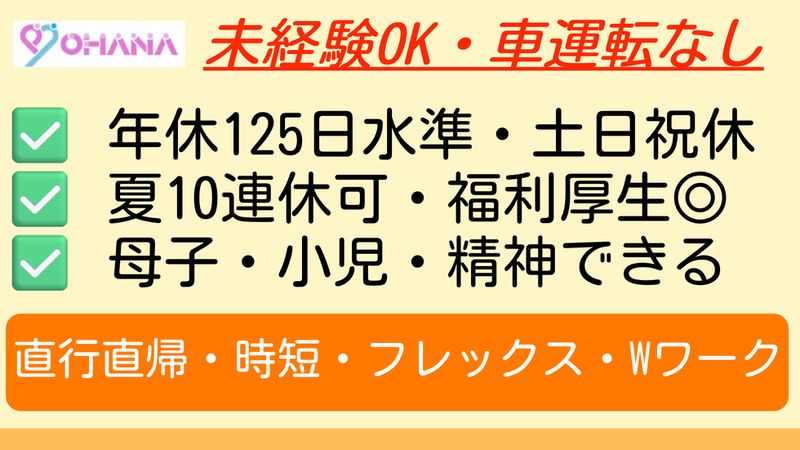 年休125水準・車運転なし・未経験OK・直行直帰・時短有・福利厚生充実