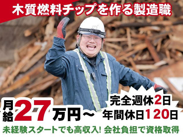 仕事内容 木くずや廃材を機械で粉砕し、 バイオマス燃料となる木質燃料チップを作る 工場での製造職です。働きながら ユンボ(ショベルカー)の運転免許を取得可能! 資格取得支援制度(費用全額会社負担)があり、 未経験から手に職を付けて長く活躍できます。 力仕事も少ないため、定着率の高い職場です。 安定企業の正社員として長く活躍しませんか? \この求人の魅力/ ・<未経験者・無資格者OK>作業研修・丁寧な指導あり! ・<月給25万円以上>未経験からスタートでも安定の高収入! ・<残業ほぼなし>プライベートの予定も充実! ・<完全週休2日制>日祝+平日1日休み!年間休日120日 ・学歴や資格等一切不問の人柄重視の採用 ・会社負担で資格取得できます 木質燃料チップを作る工場内作業員 <具体的には> ・破砕機への木材の投入 ・機械操作/マシンオペレーター ・ダンプ車への積み込み ※重たい木材は重機で扱うため、力仕事は多くありません。 【入社後の流れ】 最初の1~2週間は先輩が親身になってサポートします! 仕事の流れを覚えながら、機械や重機の操作方法も学べます。 重機の運転免許がない方には資格取得支援でしっかりバックアップ! 資格取得の勉強や技術取得も、 平日の就業時間中を使うため、休日に試験を受ける必要はありません。 【スタッフの前職は】 現場作業/解体作業/土木作業/建設系/営業/工事/電気工事/工場/食品製造 重機オペレーター/ドライバーなど様々な前職経験をお持ちの方が活躍中です! 【充実の職場環境】 ・事務所内冷暖房完備 ・屋内禁煙(喫煙室あり) 【受動喫煙対策について】 当社では事務所の外に喫煙スペースを設け、 分煙を行っております。 ここまでお読みいただきありがとうございます。 少しでも興味をお持ちいただけましたら、 お気軽にご応募ください。 【応募後の流れ】 [1]WEBまたはお電話にてご応募 [2]面接(WEB面接も対応可) [3]採用 ※応募から3営業日以内にご連絡いたします。 ※応募者が多数の場合、ご連絡が遅れることがあります。 ※面接日時を考慮いたしますので、お気軽にご相談ください。 お電話でのお問い合わせは 下記までご連絡ください。 ↓ ↓ ↓ ↓ ↓ TEL:0276-55-6771 (採用担当迄) ///////////////////// ウッドフューエル土岐株式会社 <HP>https://www.wftoki.co.jp/top.html 親会社:バイオマス・フューエル株式会社 <HP>http://www.biomassfuel.co.jp/ /////////////////////