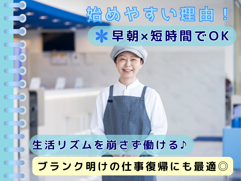 仕事内容 △▼△▼△▼求人のPoint!△▼△▼△▼△ ✨未経験OK!パートデビューも歓迎! ✨週2・3日からOK! ✨普段の家事スキルでOK ✨主婦さん中心に活躍中! ▼△▼△▼△▼△▼△▼△▼△▼△▼△▼ 朝にサッと働くだけで、 気持ちもお財布も整う。  ̄ ̄V ̄ ̄ ̄ ̄ ̄ ̄ ̄ ̄ ̄ ̄ ̄ ̄ ̄ ̄ ̄ 「朝のうちに一仕事終えると、一日気分がいい。」 「家計の足しに、自分のごほうびに、 ほどよい収入がほしい。」 そんな主婦さんに選ばれているお仕事です。 短時間でも収入が安定しやすく、 “気持ちも財布も整う”働き方が叶います。 ⏩お仕事はこんな感じ♪  ̄ ̄V ̄ ̄ ̄ ̄ ̄ ̄ ̄ ̄ ̄ ̄ ̄ ̄ ̄ ̄ ̄ ビュッフェ形式の朝食会場で、 家事の延長のようなシンプル作業です。 ・総菜の加温・大皿への盛付 ・料理やお皿の補充 ・テーブル・会場内の清掃 ・食器洗浄・片付け ・食材の在庫チェック・管理 ※お料理の配膳や会計対応はありません! 慣れるまでは先輩がそばで フォローするので、未経験の方も安心です。 ⏩タイムスケジュール例 (5:30~9:30勤務の場合)  ̄ ̄V ̄ ̄ ̄ ̄ ̄ ̄ ̄ ̄ ̄ ̄ ̄ ̄ ̄ ̄ ̄ 5:30 出勤/着替え・朝食準備 6:30 朝食提供スタート/料理補充 9:00 朝食終了/みんなで片付け 9:30 退勤 → ここからは自由時間♪ 短時間の勤務なので、 家庭との両立もしやすいのが魅力です。 ⏩朝だけ勤務で、気持ちのスイッチもONに  ̄ ̄V ̄ ̄ ̄ ̄ ̄ ̄ ̄ ̄ ̄ ̄ ̄ ̄ ̄ ̄ ̄ 朝に軽く体を動かして働くと、 気分がスッと切り替わり、生活リズムも 整って“いい循環”が生まれます。 働いたあとは、 ✔ 買い物 ✔ 掃除や洗濯 ✔ 通院 ✔ 自分の趣味 …すべて午前中〜午後にゆとりをもってこなせます。 “働きすぎないのに、ちゃんと収入がある”。 そんなちょうどいい働き方です♪ 【応募方法】 ✨直接採用担当とお話ししたい方 →電話での応募大歓迎! 092-475-1045 までお気軽にお問い合わせください! ✨【応募】ボタンから応募の方 →エントリー後、担当者からご連絡差し上げます。 ご連絡が取れる 電話番号またはメールアドレスの 記載をお願いします。