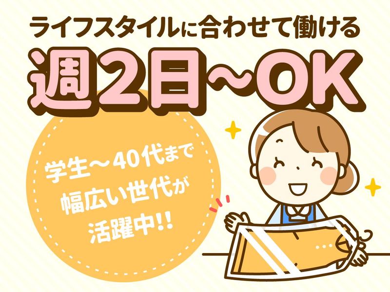 求めている人材 \ 気になった方はお問合せだけでも / ・未経験者歓迎 ・経験や知識は一切いりません! *土日のみ・平日のみでもOK *学生・フリーター・パートさん活躍中 *Wワーク・副業・扶養内勤務OK 「近所だから」 「時間の都合が良いから」 といった応募動機でも構いません! 学業や家事や子育て、掛け持ちなと 両立して働ける環境を整えています。