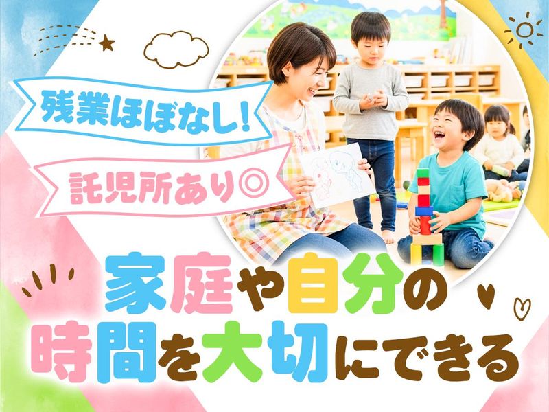 仕事内容 英語と体操に力を入れる保育園で保育士さんのサポート業務をお任せします♪ 英語や体操は担当教科の先生が行うため、安心してご応募ください♪ <主なお仕事> ・園児達の活動の見守りやサポート ・保育士のサポート ・活動の準備、後片付け ・保育室内の清掃など \\ ✨ CHECK POINT ✨// ◆保育士資格や保育従事経験がなくてもOK! 未経験の方やブランクのある方も安心してスタートできるよう、先輩保育士がしっかりサポート!子ども達と一緒に成長しながら働けます♪ ◆キャリアアップも可能◎ 当保育園では、資格の取得サポートも行っております!実際に2名の方が保育補助から保育士の資格を取得した実績もあります♪ ◆残業ほぼなし♪週3日6時間〜◎ 残業はほとんどなく、持ち帰り仕事もありません。状況に合わせて週3日〜働けます♪産休・育休の取得実績も多数! 家庭やプライベートと両立できるから、安心して無理なく働ける環境です。 ◆離職率は驚異の2%以下!働きやすい職場◎ 職員数が多いため、一人に負担が集中することはありません!さらに託児所完備で、子育て中の方も働きやすい職場です♪ 離職される方はほとんどいらっしゃいません。