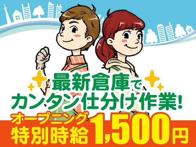 仕事内容 ドラッグストア向け日用品の仕分け・移動作業をお任せします! シャンプーや化粧品などの軽量商品が中心で、 オリコンやダンボールをカゴ車に移し、出荷バースや待機場所へ運ぶシンプルなお仕事。 コンテナからの荷下ろし(デバンニング)や、商品の積み替え・片付け作業も行います。 倉庫の自動化が進んでいるため、自動で荷物が乗る台車もあり、体への負担が少なく作業ができます。 \キレイな最新倉庫で、新しい仲間と一緒に働きませんか?/ オープニング特別時給! 完全未経験でも時給1,500円スタートでしっかり稼げる! 月収22万円以上も可能です! 最新の倉庫で設備充実! 休憩室・食堂・喫煙スペースあり 日払い・週払いOK! 「すぐにお金が欲しい」という方や 「月末まで待てない」という方は 日払・週払で即お給与GET 未経験OK! 先輩社員が丁寧にフォローするので 未経験でも安心してスタートできる環境が 整っているのでご安心ください◎ 20代~50代活躍中! 主婦パートさん、フリーターさん、中高年・シニアの方など 幅広い世代が活躍できる環境です 【こんなお仕事です!】 いずれかの作業を担当していただきます ・エレベーターから降りてきた台車を、各出荷場所へ移動 ・パレットに乗った荷物をカゴ車へ積み替え ・カゴ車の荷物を崩れないように並べ替え ・店舗から返品された商品の仕分け 自動化が進んでいる倉庫なので、 足腰への負担も少なく、どなたでも作業しやすい環境です! 「シンプルな作業で負担が少ない仕事を探している」 「高時給で安定した収入を得たい」 そんな方にピッタリのお仕事です! WEB面接OK!お気軽にご応募ください!