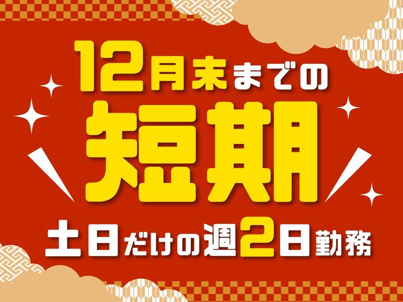 勤務時間詳細 12/6~29の期間限定 【土日だけ】の週2日勤務! ■10:00~18:00 時間内で実働7h/休憩60分 ※残業なし