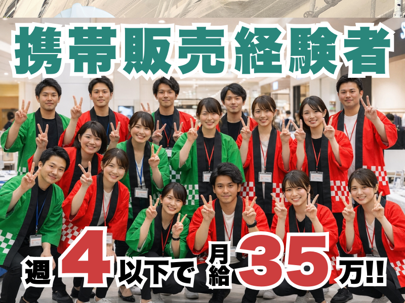 携帯販売経験者向け!週3.5日相当で月給35万円~!