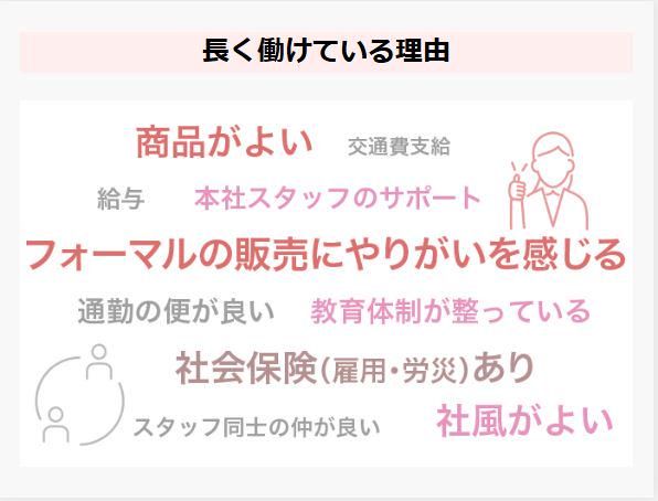 職場環境 ⭐全店舗の年代別勤務% ──────────── 30代~50代:80%の構成率◎ ⭐販売スタッフ(正社員)の募集です ───────────────── フォーマルの知識に自信がない方/未経験の方もご活躍いただけます◎