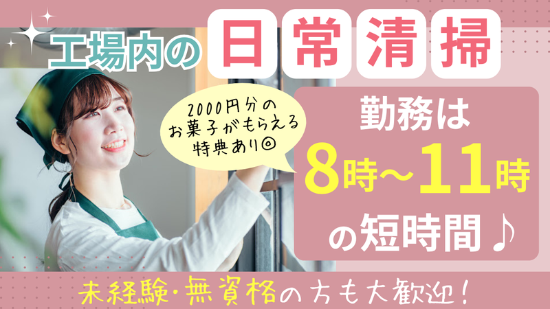 仕事内容 \\ 工場内の日常清掃スタッフ募集! // 「難しかったらどうしよう…」 「久しぶりの仕事で不安…」 そんな気持ちの方も、ご安心ください。 このお仕事は、 家庭のお掃除の延長でできる とてもシンプルな内容です♪ 勤務地は野田市内にある大手メーカー工場。 担当していただくのは、 共有スペースやトイレなど◎ ★08:00〜11:00(実働3h)の短時間! ★週3⽇(⽕・⽔・⽊)の勤務 ※上記以外に、午後の勤務時間もあり◎ ★未経験歓迎・ブランクOK ==================== ■ お任せするお仕事  ̄ ̄ ̄ ̄ ̄ ̄ ̄ ̄ ̄ ̄ ・モップや掃除機での床清掃 ・ごみ回収 ・トイレ・洗面台の清掃 ・共有部の除菌、整理整頓 など 特別な経験や専門知識は一切ありません。 決まった手順通りに進めればOKです◎ ==================== ■ 未経験でも安心な理由  ̄ ̄ ̄ ̄ ̄ ̄ ̄ ̄ ̄ ̄ ̄ ̄ 入社後は先輩スタッフが マンツーマンでサポートします。 ・清掃の順番 ・道具の使い方 ・「ここまでやればOK」という基準 すべて最初から丁寧にお教えします。 「見て覚える」ことはありません。 現在活躍中のスタッフも、 ほとんどが未経験スタート。 ブランクがある方も安心して始めています。 ==================== ■ こんな方にぴったり  ̄ ̄ ̄ ̄ ̄ ̄ ̄ ̄ ̄ ̄ ̄ ・子育てが落ち着き、久しぶりに働きたい ・午前中だけ、無理なく働きたい ・体に負担の少ない仕事がいい ・長く安定して続けたい 「できそう」「自分にも合いそう」 そう思えたら、ぜひご応募ください。 ==================== ■ ちょっと嬉しいポイント  ̄ ̄ ̄ ̄ ̄ ̄ ̄ ̄ ̄ ̄ ̄ ̄ ̄ 売店商品購入補助として、 毎月2000円分のお菓子をプレゼント! 頑張った日のご褒美に、 好きなお菓子を選べます♪ 勤務先は有名メーカーの工場内。 甘い香りに包まれながら、 気持ちもほっこり働けます。 ==================== ■ 応募後の流れ  ̄ ̄ ̄ ̄ ̄ ̄ ̄ ̄ ☆応募→連絡→面接→入社 応募内容を確認後、 担当者よりご連絡いたします。 面接では難しい質問はありません。 働き方や不安な点も、 気軽にご相談ください。 「まずは話だけ聞いてみたい」 そんな応募も大歓迎です! ==================== ■地域貢献について  ̄ ̄ ̄ ̄ ̄ ̄ ̄ ̄ ̄ ̄ ビルメンテナンス・清掃・警備事業を 通じて地域に貢献する 常陽メンテナンス株式会社は、 水戸を拠点とするプロバスケットチーム 『茨城ロボッツ』を スポンサーとして応援しています。
