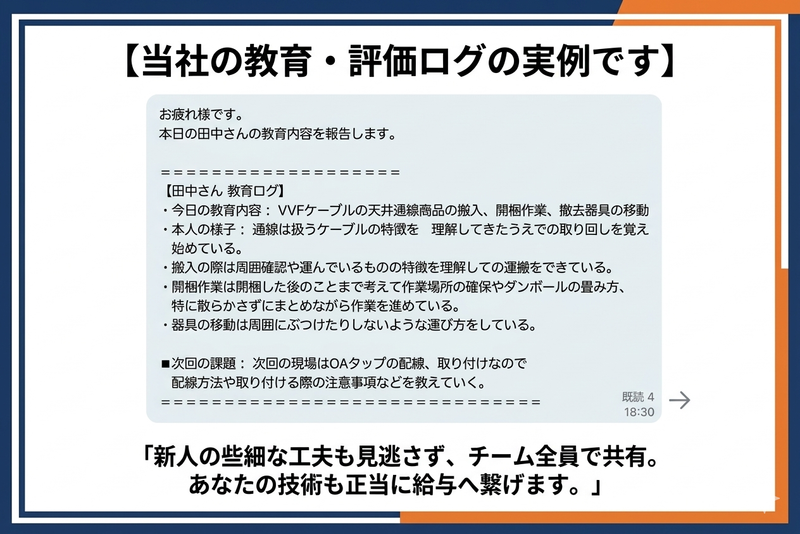 アピールポイント: 【現場ログを工事部メンバー全員で直接確認し、あなたの「作業の完成度」「成端の速さ」や「剥離の丁寧さ」を正当に評価します。 3月に入社した仲間も、この『評価ログ』を活用して着実にステップアップ中。4月からの新天地、即決採用も可能です。】 【利益還元型へのシフト: 工事の内製化を推進中。外注費を削減できた分は賞与や給与でしっかり還元する、やりがいのある評価制度を目指しています。】 【20代〜40代が中心の活気ある職場です。 1日1~2現場完結のスピード感と、最新のLAN・AV設備に対応できる柔軟な吸収力を求めています。】 私たち株式会社リベルテックは、オフィス、病院、工場など多岐にわたる施設の通信インフラ設備工事を通じて、快適で安全な社会づくりに貢献しています。特に、上場企業をはじめとする大手案件の受注が多数あり、安定した経営基盤が私たちの強みです。 今回の募集では、「電気工事スタッフ・通信工事スタッフ」として、電気工事・LAN・ネットワーク工事・照明工事・電話設備などの工事をお任せします。電気工事や通信工事などの職種経験者や防災工事の経験をお持ちの方は大歓迎です。 ※面接では実技査定(Cat6成端など)を行います。あなたの培ってきた『本物の腕』を評価するための場ですので、ぜひ自慢の工具をお持ち込みください。 ・Cat5e or Cat6成端 ・VVF剥離 あなたの技術を正当に評価し、給与に反映します。 当社では、あなたの成長を全力でサポートする環境を整えています。 〇充実の資格取得支援制度(初回受験料補助、合格奨励金最大5万円) 〇週休二日制(隔週土曜)で、振替休日を使い5日間以上の長期休暇も可能 〇月平均残業10時間程度とワークライフバランスを重視 また、都内での勤務を希望される方には移住支援も手厚くサポート!引越し代や住まいの相談など、安心して新しい生活を始められるようサポートします。 あなたの未来を、リベルテックで一緒に築きませんか?お客様から直接「ありがとう」の言葉をもらえる、やりがいのある仕事です。まずはお気軽にご応募ください。あなたとお会いできるのを楽しみにしています!