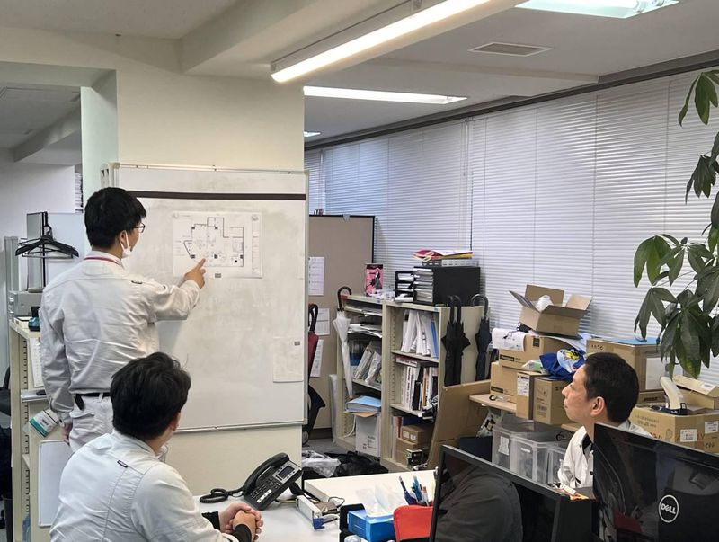 職場環境 従業員は10名で、営業と現場の工事スタッフのチームワークは抜群!コミュニケーションが活発で、和気あいあいとした職場です。入社後は48歳の責任者と入社4年目の営業スタッフが同行を担当。仕事の流れを分かりやすく教えるおで安心してください。