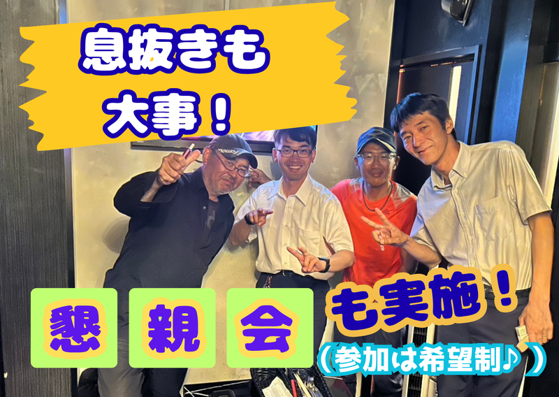 選考プロセス ここまでお読みいただきありがとうございます。 少しでも興味をお持ちいただけましたら、 お気軽にご応募ください。 <TELでのお問い合わせ、ご応募はこちらへ!080-4563-5272(採用担当)> 【応募後の流れ】 [1]WEBまたはお電話にてご応募 [2]面接 [3]入社 ※ご自宅からスマホでのWeb面接も対応しております。 ※面接は「なんば駅」「大国町駅」「守口市駅」で行っています! ※ご希望エリアでの面接も可能です!
