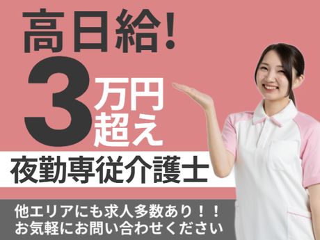 仕事内容 ■特別養護老人ホームにおける夜勤専従介護業務全般 <主な業務> ・食事の配膳、下膳等の食事介助 ・トイレ誘導、オムツ交換等の排泄介助 ・就寝介助、起床介助 ・夜間時の安否確認、コール対応 ・介護記録の作成 <派遣先> 全90床(従来型)特別養護老人ホーム <受動喫煙対策> あり(屋内禁煙) <新型コロナウイルス感染防止対策実施> マスク着用での勤務、アルコール消毒液完備などの感染対策をし、利用者様もスタッフも守れるよう体制を整えています。 ここがポイント ■日給2万8400~3万1600円 ■16:00~翌10:00(実働16時間)勤務 ■週2回勤務よりご相談ください ■全90床(従来型)特別養護老人ホーム ■最寄駅より徒歩8分!駅チカで通勤便利
