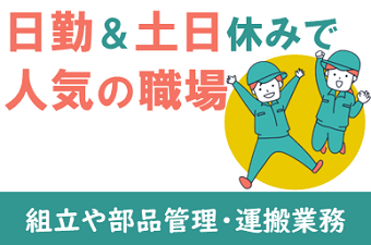 仕事内容 \\見なきゃ損!//冷暖房完備で快適な環境で働ける!大手メーカーのグループ企業でのお仕事(^O^)日勤&土日休みでライフワークバランスも充実♪ <仕事内容> 《主な作業》 【1の部署では…】 ・ユニットの組立・調整作業 ・電気部品の配線業務(電動ドライバーを使用) 【2の部署では…】 ・金物、レンズ部品の運搬 ・データ集計(PC(パソコン)へ簡単な数字の入力) ・部品の入出庫業務(台車を使用) 【1】か【2】どちらかの部署に配属となります。 立ち作業です。 クリーンルーム内で、個人作業になります。 《職場環境》 冷暖房完備♪ ロッカー有り|休憩室完備 アピールポイント <仕事内容> 《主な作業》 【1の部署では…】 ・ユニットの組立・調整作業 ・電気部品の配線業務(電動ドライバーを使用) 【2の部署では…】 ・金物、レンズ部品の運搬 ・データ集計(PC(パソコン)へ簡単な数字の入力) ・部品の入出庫業務(台車を使用) 【1】か【2】どちらかの部署に配属となります。 立ち作業です。 クリーンルーム内で、個人作業になります。 《職場環境》 冷暖房完備♪ ロッカー有り|休憩室完備 \充実した福利厚生/ ◎社会保険・雇用保険完備 ◎有給休暇有(6ヶ月経過後、10日付与)※規定あり ◎残業手当 ◎交通費支給(規定内) ◎確定拠出年金制度 ◎週払い制度(週3回対応) ◎お友達推薦制度あり(規定有り) ※1名につき3万円~10万円臨時給与として支給 ◎車(マイカー)・バイク通勤可(無料駐車場あり) ◎職場見学あり ◎社員食堂あり ◎食事持参可 ◎冷暖房完備 ◎ロッカー・休憩室利用可 ◎福利厚生プログラム (宿泊、グルメ、ショッピングなど大幅割引が受けられる10万アイテムのメニューがあります。)