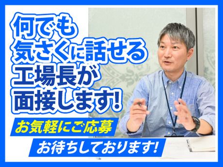 選考プロセス ご応募 ↓ 担当者よりご連絡の上、面接日時の調整 ↓ 面接・工場見学(実施回数1回/工場長 ※リモート面接OK) ↓ 面接後5日以内に、結果ご案内 ↓ 採用(勤務開始日応相談) 【面接について】 面接時に履歴書(写真貼付)、職歴書、筆記用具(適性検査を20分程度実施)をご持参ください。 お仕事内容に関するお問い合わせや、面接日、勤務開始日に関するご相談もお気軽にどうぞ。 ※ご提出いただいた履歴書等の応募書類は、 選考終了後、弊社管理物として取り扱わせて頂きます。 返却はいたしかねますので、あらかじめご了承下さい。 【問合せ先について】 問合せ先:0799-33-1332 応募方法 WEBからのご応募は必要事項をご入力の上、送信してください。 お電話でも受付中です。 繋がりにくい場合は、恐れ入りますが再度おかけ直しください。 *書類選考ナシ!* *事前の履歴書送付は不要!*