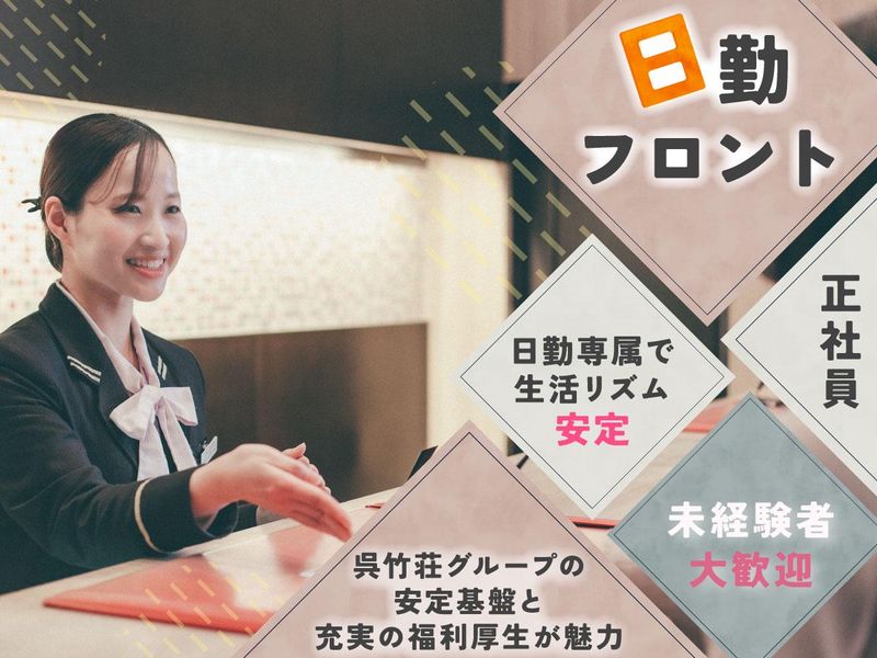 仕事内容 ✨未経験スタート応援◎ ⇒先輩が丁寧に教えます! ✨正社員デビューも歓迎! ✨昇給・賞与・手当も充実♪ ✨残業月5h以内!実働8時間 ✨アイデアを出しあえて自由度が高い! ✨駅チカ徒歩1分!車通勤もOK! 転居を伴う転勤なし! ✨This job requires at least N1 level Japanese proficiency. ✅応募について ~・~・~・~・~・~・~・~ 気になる点などはお気軽にご相談下さい♪ ☎:0577-33-7111 ⇒Webからは24時間応募受付中 ✅お仕事内容 ~・~・~・~・~・~・~・~・~ 日勤専属のホテルフロントのお仕事です サービス業が初めての方も歓迎◎ <具体的には> ・チェックイン・チェックアウト業務 ・フロントでの接客・ご案内 ・予約やお問い合わせの電話・メール対応 ・PC入力等の事務作業 など ◎フロントとして勤続することはもちろん 将来的には、営業や経理、サービス、 本部スタッフなど 様々なキャリアの選択肢があり ステップアップできる環境です。 ✅働きやすさ抜群です! ~・~・~・~・~・~・~・~・~・ 当社ではスタッフの働きやすさを 第一に、労働環境の見直しを行っています! 残業は月5時間以内で、 先輩が隣でサポートしてくれるので安心! ✅募集要項 ~・~・~・~・~・~・~・~・~ 体制強化のための新しい仲間の募集です。 日勤専属で働けるので 生活リズムを安定させられます。 ✅異業種からの転職者活躍中! ~・~・~・~・~・~・~・~ 未経験の方やブランクある方大歓迎! 入社後は先輩の横について 少しずつ仕事の流れを覚えていきましょう。 未経験から始めた先輩も多いので 新人さんの不安な気持ちにも 寄り添ってくれますよ。 ✅近隣に住んでいる方多数活躍中! ~・~・~・~・~・~・~・~・~ 現在働いているスタッフは、 高山市内・近隣エリアから 通っている方がほとんど! 「駅前=遠方からの通勤が多そう」と 思われがちですが、 実際は自宅から車・自転車で 通っている地元スタッフが中心です♪ ✅常連さんとのふれあいも楽しい ~・~・~・~・~・~・~・~ 出張の度に当ホテルを選んでいただける 常連さんが多くみえます。 そんなお客様との触れ合いが楽しいのも 当ホテルの特徴。 だから、あえて自動チェックイン機は入れず 交流する機会を大切にしています。 ✅安定の呉竹荘グループ ~・~・~・~・~・~・~・~ 全国51店舗のホテル運営を中心に、 レストラン、ウエディング、 指定管理、保育という 5つのホスピタリティにまつわる 事業を展開する呉竹荘グループ。 「仕事を通して人生を豊かに」 を理念に掲げ、その実現のための 働き方改革に本気で取り組んでいます。 ・残業や休日の見直し ・社内ジムやグループ内託児所の用意 ・さらに産育休制度、時短勤務など ライフスタイルが変わった後も キャリア継続を応援する制度など。 スタッフが働きやすくなれば、 仕事もプライベートも充実できて、 より良いサービスを提供できる。 その結果お客様にも満足していただき、 地域貢献につながると考えています。