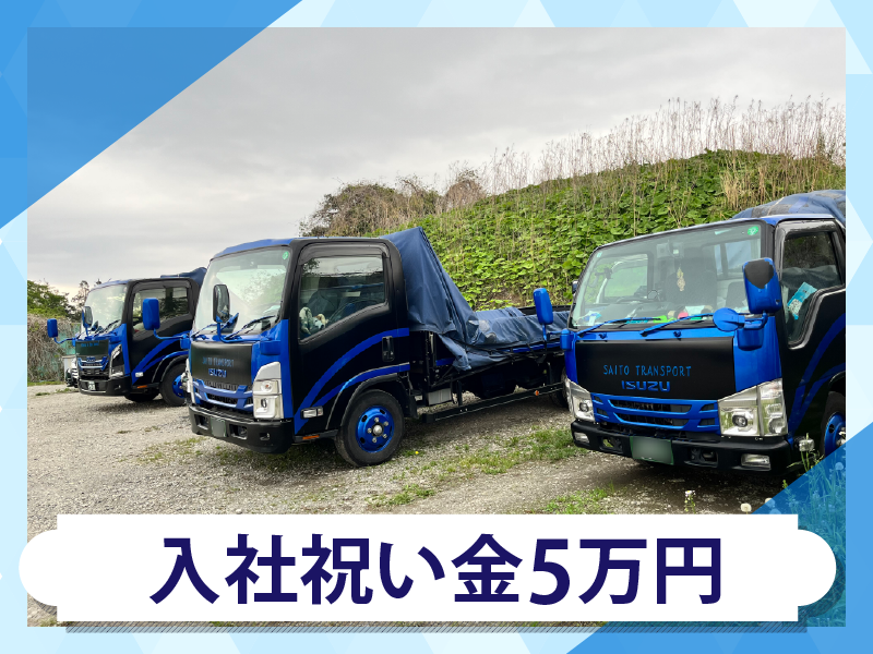 仕事内容 \\正直、楽な仕事ではありません。だから稼げます❗// スキルや経験、そして何より「現場での機転とガッツ」次第で月給40万円以上も可能◎ 増車予定につき、プロ意識の高いドライバーを増員募集します✨ ◆実働7時間、定時18:00まで ◆「指示待ち」ではなく「自分で動く」人を評価 ◆大型からの転身、ブランク、50代からの再挑戦も歓迎! ・ー・ー・ー・ー・ー・ー・ー・ー・ー・ 「ただ運転するだけ」に飽きた方、 自分の裁量で現場を動かしたい方を 全力でバックアップします! ✨年功序列一切なし。実力と根性主義 ✨関東&近距離ルート配送(1日2~3件) ✨機械作業メイン!でも最後は「人の気配り」 ✨直行直帰OK!効率重視の働き方 ・ー・ー・ー・ー・ー・ー・ー・ー・ー・ ╭━━━━━━╮ 仕事内容 ╰━v━━━━╯ 普通免許があればスタートOK! 2tトラックを使用して、建築資材を中心に 関東圏内の現場や拠点への配送をお任せします。 【斉藤通商で求める「プロ」の動き】 建築現場は毎日状況が変わります。 「ここに置いてもらえると助かる!」「急ぎでこれだけ先に!」 そんな現場の声に、持ち前の根性と柔軟さで応えてください。 「言われたことだけやる」のではなく、現場をスムーズに回す一助となる。 その**「一歩先の動き」**を、当社は給与でしっかり評価します。 ◆1日の配達は2~3件程度! 件数は少ない分、1件1件の現場に丁寧に向き合えます。 ◆手積み手降ろしは、体への負担が少ない範囲。 ※手下ろしはほとんどなく、機械作業がメインです。 ―・―・―・―・―・―・―・―・―・― ╭━━━━━━━━╮ 働く環境について ╰━v━━━━━━╯ 穏やかで親切なベテランドライバーが 多数在籍しているので、 サポート体制もばっちり! 安心してお仕事を スタートすることができます! また、わからないことはすぐ聞ける 職場の空気が当社の魅力です!! 「年齢的に採用してもらえるか不安」 「大型しか乗ったことがなく、 2t車は初めて」という方も しっかりとサポートします! ―・―・―・―・―・―・―・―・―・― 【勤務地・アクセス】 所在地:千葉県鎌ケ谷市くぬぎ山2-12-60 ▶新京成線「くぬぎ山駅」徒歩8分 ▶北総線「大町駅」徒歩15分 ▶バイクや車通勤OK! ―・―・―・―・―・―・―・―・―・― ✅業務委託も募集中 月給50万~85万円! ※試用期間・社会保険 準中型免許資格取得なし。他同条件。 《月収85万円の先輩もいます!》 ―・―・―・―・―・―・―・―・―・― 【会社概要】 業種:運送業