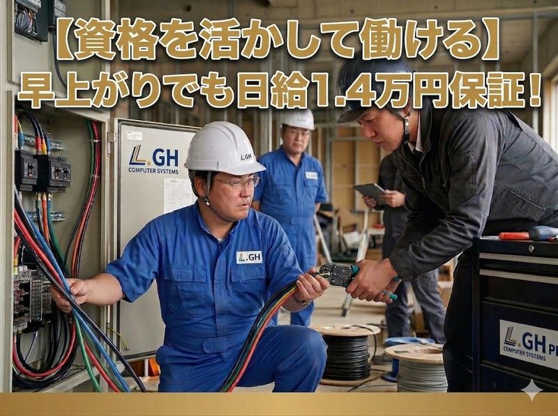 仕事内容 ―――――仕事のPOINT――――― ◆電気工事資格を活かして働ける電工スタッフ ◆高日給14,000円!安定した収入が可能 ◆交通費全額支給 ◆週払い・前払い制度あり(規定) ◆3ヶ月のお試し就業OK ――――――――――――――――― 【仕事内容】 コンピューター設備に関する電気工事をお任せします。 <具体的には> ・電源・配線の施工 ・機器の設置および接続作業 ・配線ルートの整理・施工 ・設備の点検・調整 現場はチームで進めるため、 一人に負担が集中することはありません。 経験に応じて担当範囲をお任せするため、 スキルを活かして働ける環境です。 <勤務期間> 即日~2027年3月頃までを予定した 長期案件のお仕事です。 入職時期についてはご相談ください。 ============= ☆アピールポイント☆ ============= ■ 経験・資格をしっかり評価 電気工事士資格をお持ちの方であれば、 これまでの経験を活かして即戦力として活躍可能。 ■ 日給保証あり 作業が早く終わった日でも日給は全額支給 ■ 長期現場で収入安定 2027年まで継続予定のため 腰を据えて働けます ■ 寮費無料 一人部屋・Wi-Fi・家具家電付き ―――――――――――――――― ~応募を検討されている皆様へ~ 現場では、さまざまな業界出身の方が活躍中です。 この業界が初めての方も大丈夫。 先輩スタッフが基本から丁寧に教えます。 不安なことがあれば、まずはご相談ください。 皆さんが安心して働ける環境を整えています。