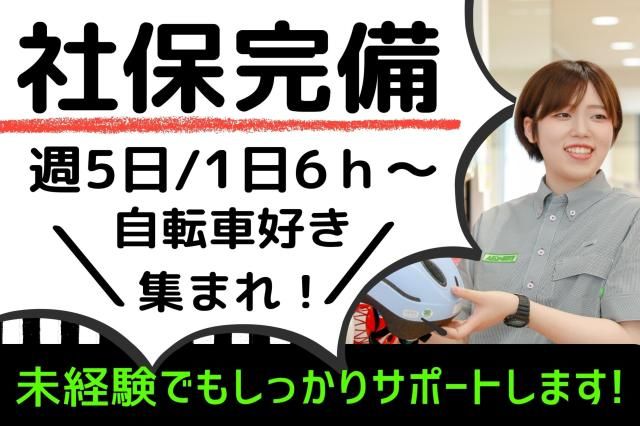 時給1,173円~/日払い制度有/未経験歓迎/1ヶ月毎シフト制/週3日・1日4h~扶養内勤務OK <専門知識不要!初めてのアルバイト・パートを大歓迎!> 自転車屋の専門知識や経験がなくても大丈夫!未経験スタートを応援します★ 接客販売をしたことがない方も安心してください!長期歓迎!! お仕事帰りにイオンで社割価格でお買物が出来て便利と評判ですよ◎ <日払い制度あり> 働いた分の収入がすぐに得られるので日々の頑張りが目に見えてモチベーションも上がります♪ 勤怠実績の最大70%を引き出すことができ、月末まで待てない…などの不満を解消いたします。 ※制度を利用するためには入社後、事前登録が必要です。 ※ご利用毎に別途手数料が発生いたします。 <Web面接を実施> ご来店いただく事なくご自宅で面接ができるので安心です。 アプリのダウンロード等は必要なく、お送りしたURLよりご参加可能。 まずは下記「Web応募」ボタンよりエントリーをお願いします。 応募時は履歴書不要です。 <幅広い世代が活躍中♪> 20代や30代だけでなく40代・50代の中高年主婦パートさんも多く活躍中! 子育てにひと段落した主婦パート(主夫パート)さんがプライベートと両立しながら働いています◎ イオンバイクは安定して長期で働ける環境です。 即日勤務OKです。お気軽にご相談ください。 <うれしい待遇★> 全国イオンのお買物で使える従業員割引制度や介護休暇や各種手当、その他様々な特典を使えるイオングッドライフクラブ(社内共済会)も利用可能!