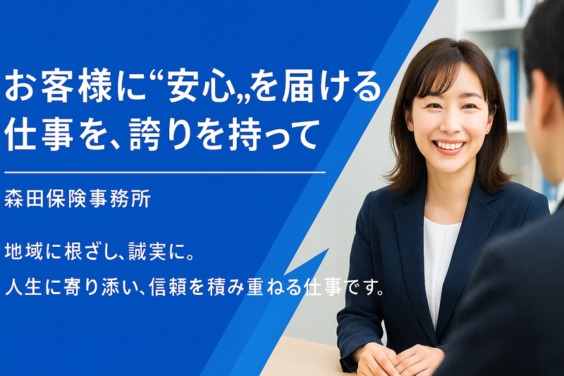 仕事内容 ───────【仕事内容】─────── 1.保険契約の事務処理 見積書作成 申込書のチェック・入力 契約更新手続き 保険会社システムへのデータ入力 書類の不備確認・訂正案内 2.電話・来客対応 お客様からの問い合わせ対応 (住所変更、車両入替、証券再発行など) 取引先からの連絡受付 来店されたお客様の一次対応 3.事故サポート(簡易) 初期連絡の受付 必要書類の案内 保険会社・担当者への取次ぎ ※専門対応は営業担当が行うためご安心ください 4.顧客管理・データ管理 顧客データの入力 更新管理(満期案内の準備) 書類整理・ファイリング 各種社内資料の作成サポート など ※生保関係の資格をお持ちでない場合は 入社後に取得をお願いしております。 *‥‥*‥‥*‥‥*‥‥*‥‥*‥‥* \ノルマなどはございません/ 新規契約についてノルマはありません◎ 家庭的であたたかな雰囲気の職場なので、 すぐに馴染めると思います♪ 経験やスキル、資格を活かして 働きたい方にも、 ピッタリな環境です✨ *‥‥*‥‥*‥‥*‥‥*‥‥*‥‥* \当社について/ 森田保険事務所は、単なる保険を売る会社ではなく お客様一人ひとりの人生に寄り添い、 共に未来を考えるパートナーを目指しております。 地域に根ざした少人数の環境で、 お客様との信頼関係を築きながら じっくりと関係性を深めていくことが可能です。 ノルマがない代わりに、インセンティブや 明確な評価制度が整っていますので、 頑張りを正当に評価し給与に反映しております。 私たちと一緒に、この先のキャリアを あなたらしく築いていきませんか? ★未経験の方でも、先輩スタッフが丁寧に指導します。 *‥‥*‥‥*‥‥*‥‥*‥‥*‥‥*
