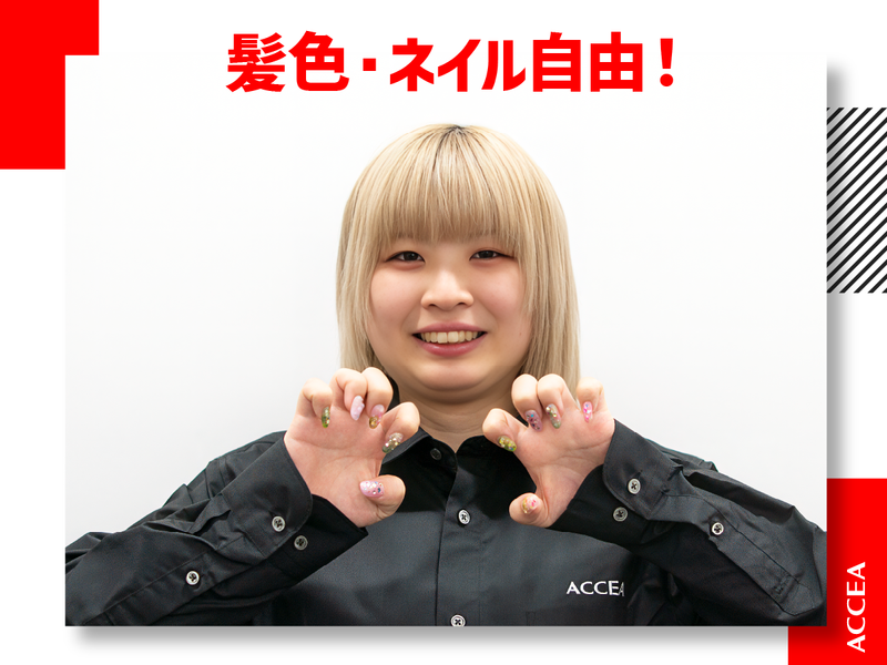 職場環境 髪型・髪色・ネイルは自由◎フリーターさんや学生さんも活躍中!明るく自由な職場です✨ブランクがある方も安心して働ける環境が整っており、チームワークを大切にしています♪