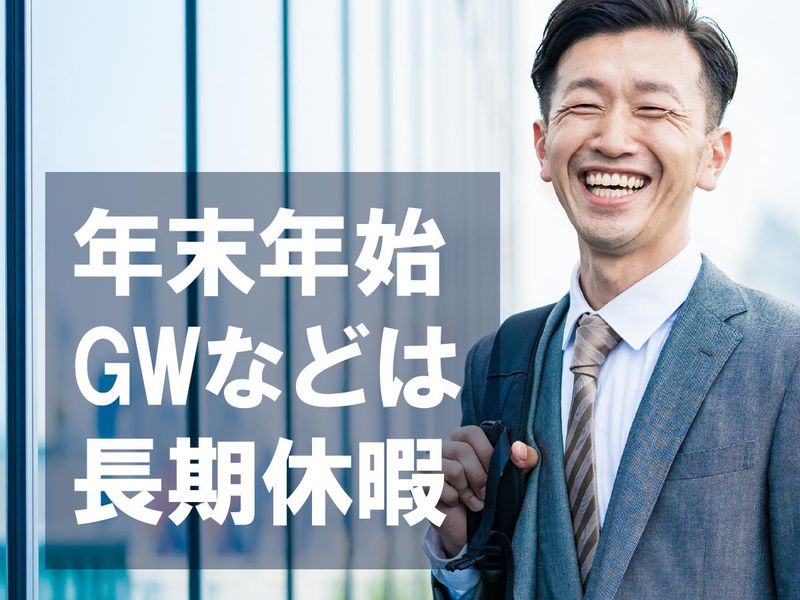 休日休暇 週休2日制/水曜定休+他曜日 ※月末、日曜以外は、日曜休日も可能です! ※1~3月の繁忙期は隔週休2日制 ◎GW休暇 ◎夏季休暇 ◎年末年始休暇 ◎有給休暇 ◎慶弔休暇 ◎結婚記念日休暇 ◎誕生日休暇