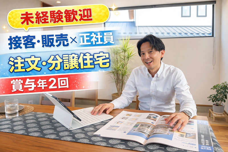 仕事内容: ///////////////////////////////////// ⭕月給25万円~30万円+賞与年2回+資格手当あり ★社員定着率高い会社です ✅ノルマなし。数字より、お客様にしっかり向き合える仕事 ✅来場・お問い合わせ対応中心で未経験でも始めやすい ✅注文住宅・建売・リフォームまで幅広く関われる ✅設計・工務にすぐ相談できる体制で安心 ✅SNS・イベント企画にも関われて、反響を生む力も身につく ///////////////////////////////////// ✅《具体的な仕事内容》 先輩社員について、プランの打ち合わせ、イベント案内の補助を行っていただきます。 その他具体的な内容は下記のとおりです ◆モデルハウスや分譲住宅のイベントの企画 ◆販売物件をポータルサイトに登録 ◆モデルハウス。イベントに来場したお客様への対応・提案 ◆お客様からの反響メール・電話対応 など ✅《最初の数ヶ月》 【入社後の流れ】 入社後は、先輩の打ち合わせに同席しながら、少しずつ仕事を覚えていきます。 最初は、 ・資料作成 ・SNS更新 ・イベント準備 ・物件情報の登録 ・お客様対応のサポート などからスタートします。 住宅や不動産の知識がなくても大丈夫です。 分からないことは、設計や工務のメンバーにもすぐ相談できます。 未経験からでも、一歩ずつ成長していける環境です。 ✅1日の流れ 8時30分~出勤清掃 9時00分~朝礼ミーティング 10時00分~お客様との商談準備、SNS更新等 12時00分~昼休憩 13時00分~外回り(販売物件管理、建築現場確認等) 16時00分~事務作業、イベント準備、資料作成等 18時00分~退勤 ✅【会社概要】 昭和60年の創業以来、50年家づくりを行ってきた会社です。 注文住宅、分譲住宅(建売)、リフォームまで手がけており、お客様にとってベストな暮らしの提案ができるよう心がけています。 家づくりは暮らしづくり、これからもお客様にとって心地よい暮らしのサポートをする会社でありたいと思っています。