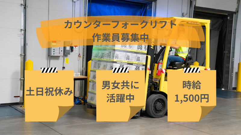 仕事内容 倉庫内カウンターフォーク/未経験OK/土日祝休み/男女共に活躍中の職場です。 物流倉庫内での商品の入出荷管理の業務になります。 具体的な仕事内容は主に3つになります。 ①入荷商品の積み下ろし ②仕分け商品のチェック・格納(入荷リストをもとに商品の品番・入荷数・キズなどをチェックします。仕分けや荷下ろし業務は専属スタッフが担当します。) ③出荷商品の積込み(リストをもとに出荷準備された商品をトラックへ積込みます。) 基本的にフォークリフト運転での積込み・格納が主な1日の流れになります。 30~60代の幅広い年齢層が活躍中の職場です。 難しい知識は必要なく簡単な作業をお任せするので、未経験でもスタートOK。