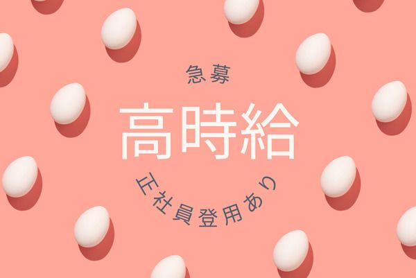 仕事内容 【長く働けて高時給】&【日払いもOKで交通費も支給!】 久しぶりにスタッフ追加募集が決定★ 長く働くための正社員登用制度も導入しています! 新しい工場内にて、ヒヨコやにわとりの見守りや 飼育・管理のお仕事となります。 元気に育ってるかの見守りの業務が中心です。 卵の管理やエサあげやフンの始末等は、 主に機械作業オートメーション化のため簡単です。 環境整備の為に、消毒や掃除等のお仕事も御座います。 重量物も一切無く、働きやすさ抜群!! 入社前に職場見学もありますので、 先ずはお気軽にお問い合わせ下さい★ :+:・-・:+:・-・:+:・-・:+:・-・:+:・-・:+: 【選べるシフト制でプライベートも充実★】 シフト制なので、平日休みも可能です。 自分の好きな予定でシフトを組めますので、 プライベートも充実!! アットホームな職場で人間関係も良好! 長期で働きたい方にぜひおススメです! ※1ヶ月に約9日間の休日が御座います★ :+:・-・:+:・-・:+:・-・:+:・-・:+:・-・:+:
