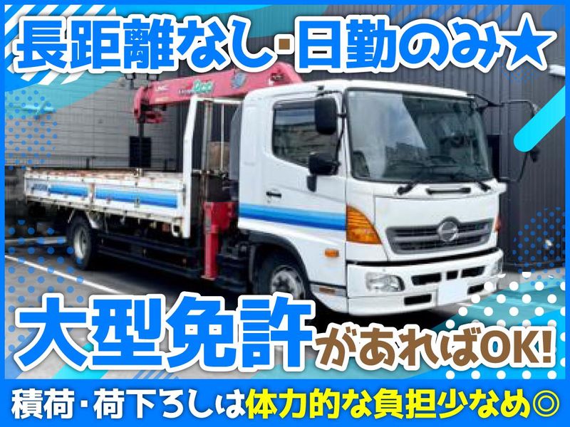 求めている人材 【必須条件】 ・大型免許 ※経験年数は問いません。 【歓迎資格】 ・小型移動式クレーン ・玉掛け ・フォークリフト免許 ※お持ちでない方は入社後に取得可能(会社負担) 【こんな方を歓迎します】 ・安全運転を心がけられる方 ・安定した環境で長く働きたい方 ・チームワークを大切にできる方 ・運転が好きな方 少しでも気になった方は、 まずはお気軽にご応募ください。