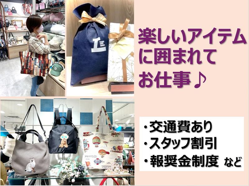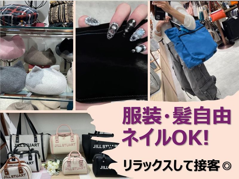 求めている人材 ✅未経験歓迎/学生もOK! *人と接することが好きな方 *販売・接客の経験があれば大歓迎 ◎色々なメーカー、デザイナーのバッグや雑貨を揃えているので おしゃれに興味がある方や、コーディネートを考えるのが好きな方などにピッタリの仕事です。 ◎服装や髪色・髪型自由!ネイルやピアスも自分らしく働けます。 <こんな方におススメです> ・お客様との会話を楽しみたい方 ・良いものを扱いたい方 ・「好きなこと」を仕事にしたい方 ・学校やプライベートと両立したい方