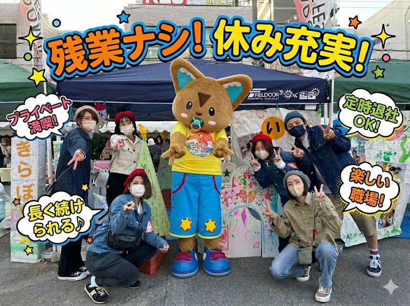仕事内容 <当園の強み!> ✅残業ナシ!持ち帰り仕事もナシ! ✅各月の土日の数が必ずお休みの数になる♪ ✅託児施設完備で空きがあれば、 自分の子どもも入園可能!一緒に登降園可能♪ ✅https://kiraboshi8969.recruitsite.net/ ⎿もっと詳しく写真付きでご紹介!ぜひご覧下さい! 【仕事内容】 子どもたちの身のまわりのことや日常生活、遊びのサポートなどを通じて日々の成長を見守ります。 日誌の記録、保護者と職員間のコミュニケーション対応など、保育業務全般をお願いします。 定員12名、施設の利用年齢は0歳~就学前です。 スタッフは1日3人~4人体制で、負担が少ないのでアナタらしく働けます! ~一日の流れ~ 07:00/開園・登園の対応 09:00/朝の会、朝おやつ、保育室見守り 10:00/設定保育など 12:30/お昼休憩 13:30/午睡チェック 15:30/午後の活動見守り 16:00/早番勤務終業 16:30/順次、送迎対応 18:30/長時間保育 19:00/遅番勤務終業 ※10分くらい前から片付け、着替えなどを行い、定時にピッタリ退社OK! ★勤務時間、お休み、はしっかり規定通り守れる職場環境です♪ 希望休も取れますよ♪ ◎他園にも応援に行って頂くこともあります◎ 定期的には守口園へ行って頂き、生野区にある2園(生野園・桃谷園)へ応援に行って頂く場合もあります。 ※当然、この応援に関しては、お互い様で、大和田園・守口園にて応援が必要な場合は、生野区にある2園から応援に来ていただいています。 大和田園:京阪大和田駅徒歩3分(常駐勤務先) 守口園:京阪守口市駅西口出口徒歩2分/守口市本町1-7-21 ラグーナ本町 生野園:千日前線徒歩5分/大阪市生野区巽中4-3-1 ファミールパピヨン 桃谷園:桃谷園徒歩5分/大阪市生野区桃谷2-23-41 きらぼし保育園 桃谷園 <HPはコチラ!>https://kiraboshi8969.com/