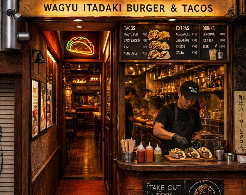WAGYU BURGER ITADAKI TACOS