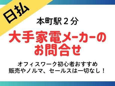 本町×日払|大手家電メーカーのかんたんな問合せ対応【オフィスワーク未経験の方にもおすすめ♪】
