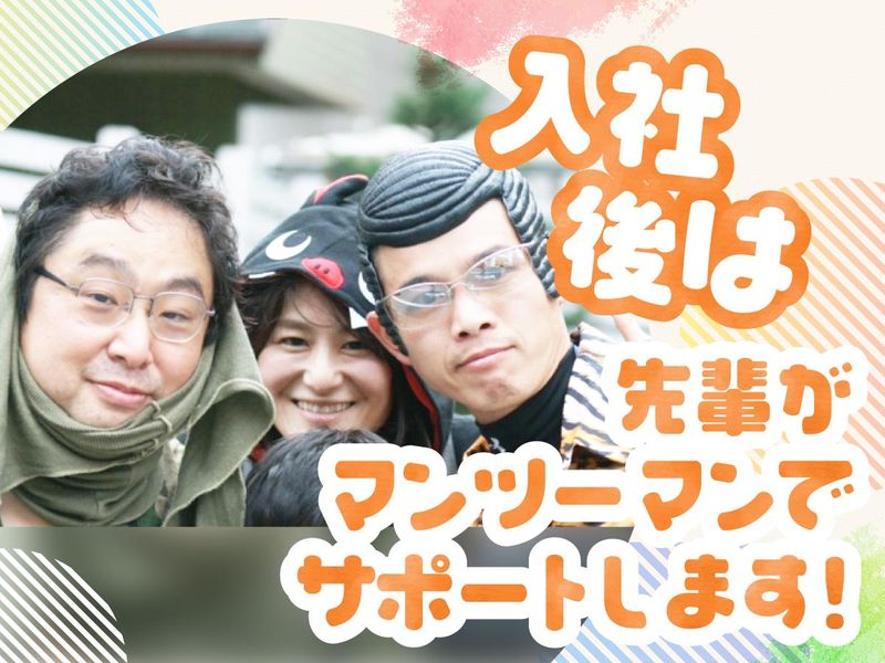 求めている人材 *業界未経験歓迎 *20代・30代活躍中 └ベテランスタッフが丁寧に指導 するのでご安心ください♪ *人と接するのが好きな方 JA職員や公立学校の先生、福祉施設事務 など、異業種からの転職者も多数!! 【歓迎条件】 *教員資格および児童指導員の 要件を満たす方 *自動車運転免許をお持ちの方 *留学生の方は日本語N3以上の方 【以下に当てはまる方を歓迎します】 ●当校のミッションやビジョンに 共感していただける方 ●チームワークを大切にできる方 ●感謝の気持ちをもてる方 ●積極的にアイデアを出したり、 自発的に行動できる方 ●サプライズを提供できる方 【先輩インタビュー】 (児童指導員:主任:元イラストレーター) Q 入職のきっかけは? A 前職のイラストレーターの仕事を通じて 発達障害のお子様と接した際に、 子どもに関わる仕事に興味が 生まれました。未経験でしたが、 今までの経験が療育に活きている 実感があります! Q 職場の魅力について教えてください A 色んなタイプのお子様との 出会いがあることです。 うまくいかない時も工夫次第で 何かしら答えが出てきます。 その積み重ねが自己成長となり やりがいに繋がっています。 周りの先生方のサポートも ありがたいですし、 研修の幅広さも魅力の1つです。